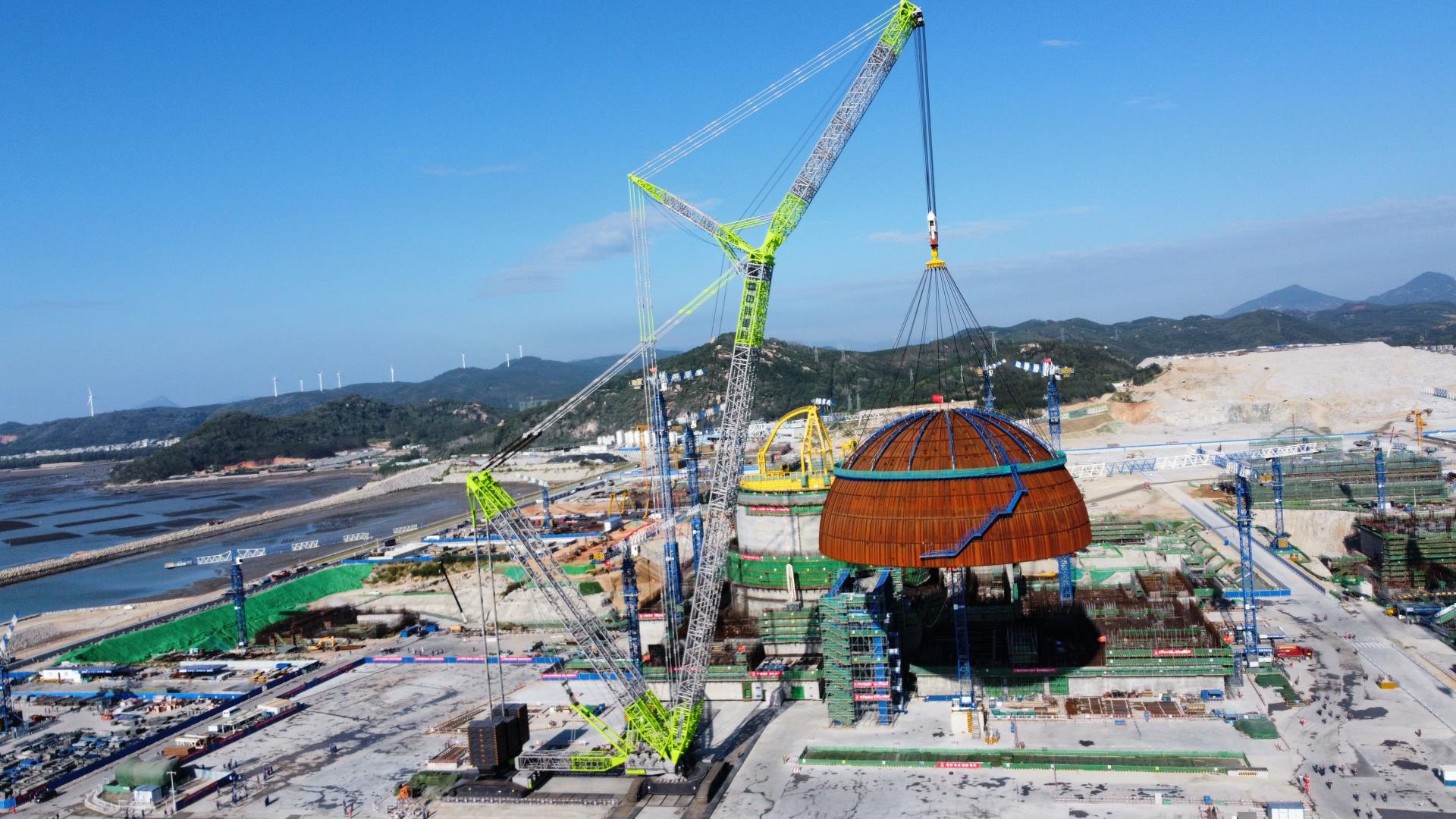 △中聯重科ZCC3200NP履帶式起重機進行漳州核電穹頂吊裝