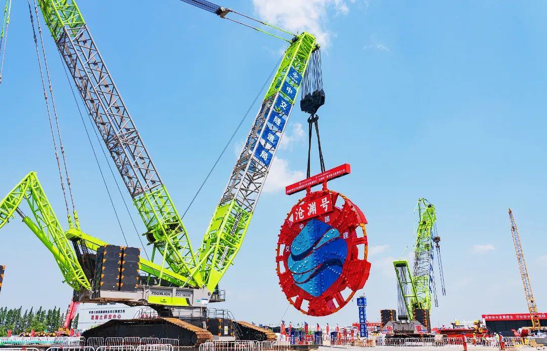 5月11日上午,世界**長的公路水下盾構(gòu)隧道——海太長江隧道項目迎來重要節(jié)點。隨著現(xiàn)場總指揮一聲令下,國內(nèi)**大直徑盾構(gòu)機“滄淵號”重達481.5噸的巨型刀盤,由中聯(lián)重科1600噸履帶起重機順利吊裝下井,標志著項目建設(shè)再次邁出關(guān)鍵一步。