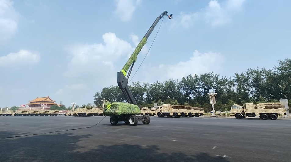 △中聯(lián)重科72米高空作業(yè)平臺(tái)伸臂至長(zhǎng)安街閱兵中線協(xié)助拍攝